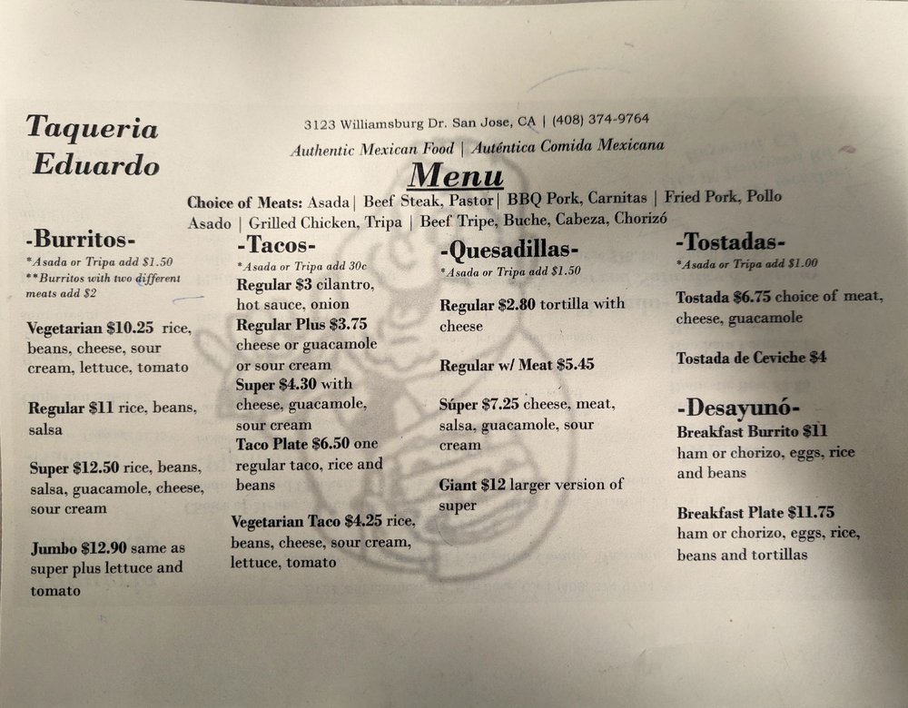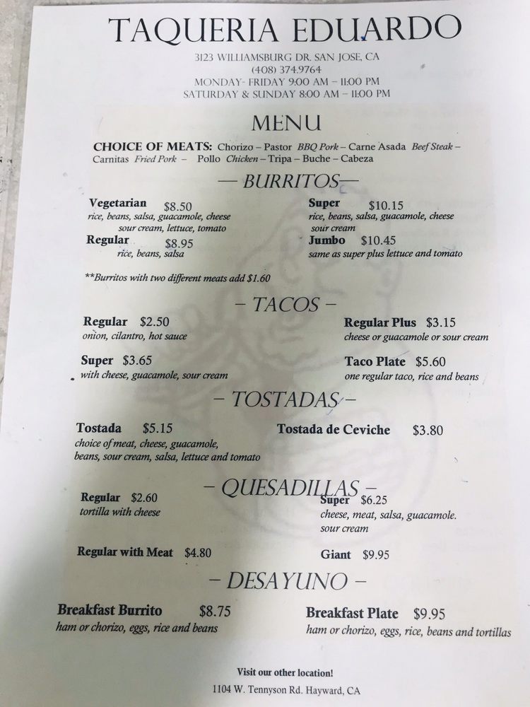 Located in San Jose, California, Taqueria Eduardo serves up some of the most flavorful Mexican cuisine you can find. Guests are treated to a casual atmosphere perfect for groups and families. The menu features an array of delectable options, but the standout is undoubtedly their renowned burritos, especially the super burrito, filled generously with carne asada.